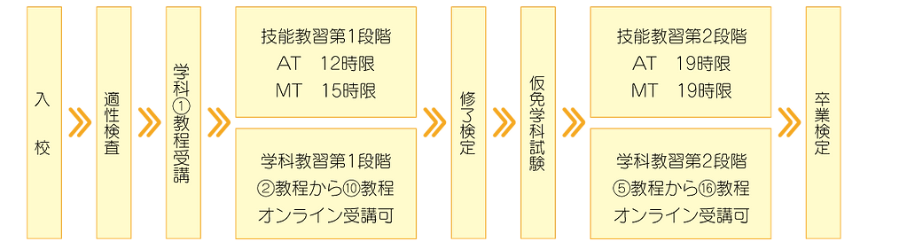入校から卒業までの流れ(例:免許なしの方)