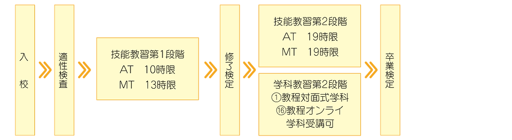 入校から卒業までの流れ(例:普通二輪免許所持の方)