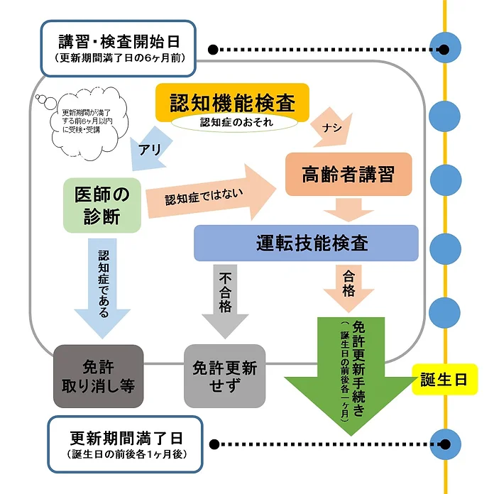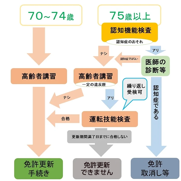 また、75歳以上であれば認知機能検査、75歳以上で一定の違反歴ある方にはさらに運転技能検査に合格しなければなりません。 -